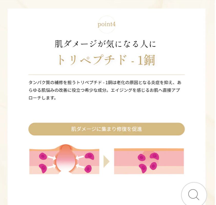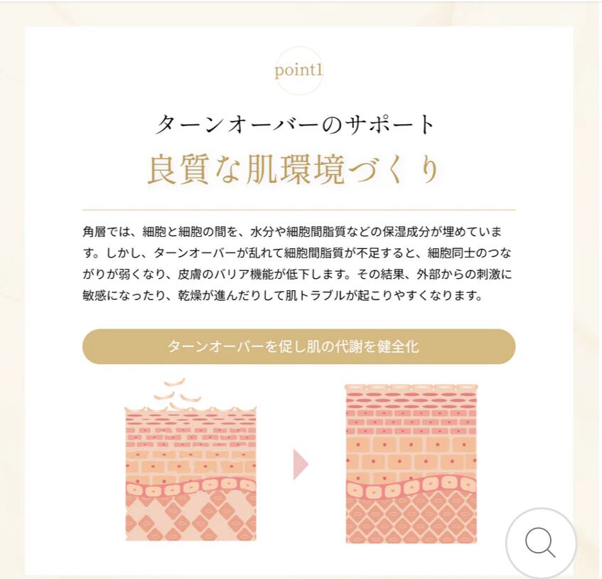 水、スクワラン、グリセリン、ペンチレングリコール、ジメチコン、ヒト角化細胞順化培養液、 バチルス/(ローヤルゼリー/ダイズ) 発酵液エキス、 トリペプチド-1銅、ヒトオリゴペプチド-1、ヒトオリゴペプチド-13、セラミドNG、セラミドAP、セラミドAG、セラミドNP、セラミドEOP、グリチルリチン酸2K、ツボクサエキス、 ツボクサ葉エキス、ソメイヨシノ葉エキス、 コンフリー葉エキス、カンゾウ根エキス、ヒメフウロエキス、ブクリョウタケエキス、チャ葉エキス、イタドリ根エキス、オウゴン根エキス、カミツレ花エキス、ローズマリー葉エキス、 トコフェロール、アセチルヒアルロン酸Na、加水分解ヒアルロン酸、ヒアルロン酸Na、 加水分解エラスチン、加水分解コラーゲン、加水分解水添デンプン、 (アスコルビル/トコフェリル) リン酸K、 ビオチン、 水溶性プロテオグリカン、フィトステロールズ、シア脂、トリ (カプリル酸/カプリン酸)グリセリル、ヘキサ(ヒドロキシステアリン酸/ステアリン酸/ ロジン酸)ジペンタエリスリチル、トリエチルヘキサノイン、グリコシルトレハロース、BG、 ステアリン酸グリセリル(SE)、バチルアルコール、ベヘニルアルコール、水添レシチン、ステアリン酸ソルビタン、パルミチン酸デキストリン、 (アクリレーツ/アクリル酸アルキル(C10- 30))クロスポリマー、キサンタンガム、カルボマー、ヒドロキシプロピルメチルセルロース ステアロキシエーテル、水酸化K、 ペンテト酸5Na、1,2-ヘキサンジオール